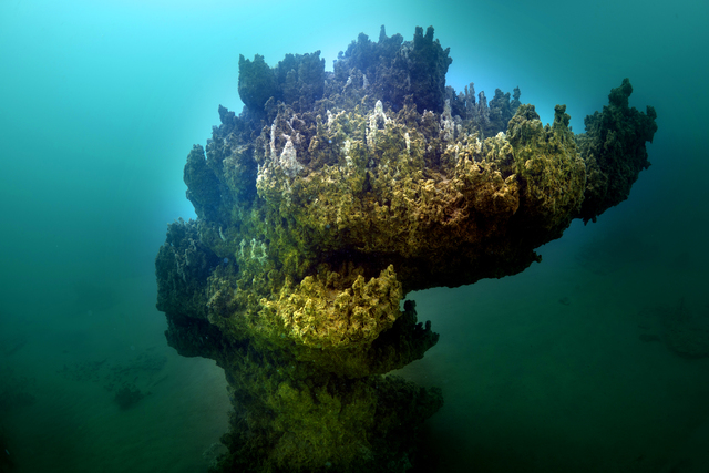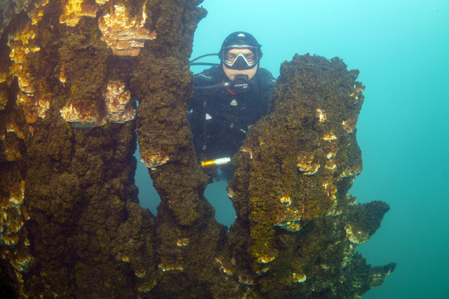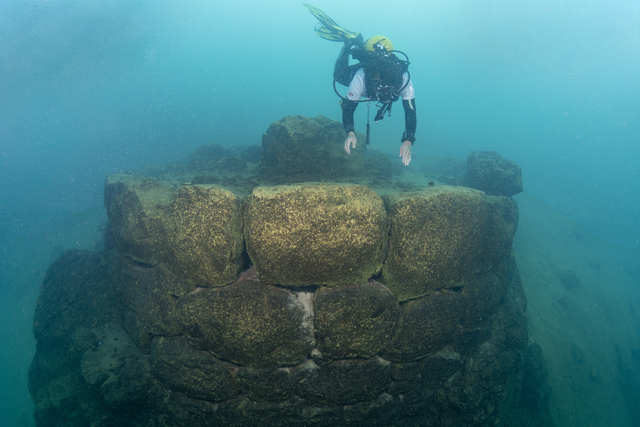 Su Altı Görüntü Yönetmeni Tahsin Ceylan, Van Gölü'nde yaptığı dalış sırasında Akdamar Adası kıyısında 15 metre derinlikte bulunan burç benzeri yapı ile duvar kalıntıları görüntüledi