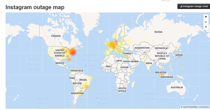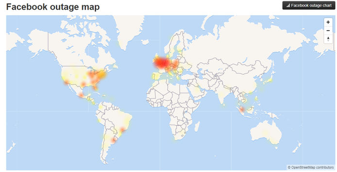 Sitedeki anlık çökme haritalarına göre Facebook çatısındaki sosyal paylaşım platformlarına Türkiye saati ile 16:00’dan itibaren başlayan erişim sorunlarının özellikle Avrupa’da yaşandığı gözleniyor.