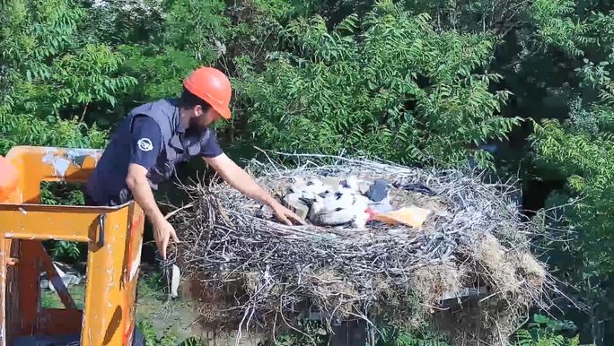 "İpi asla kendi imkanlarıyla çıkaramazdı. Hemen dikkatlice müdahale edip yavrularını kurtardık. Anneleri de yuvaya geldi. Normal zamanda yuvaya müdahale etmiyoruz, yuvadaki kirlenme ve benzeri sorunlara ama burada olağanüstü bir durum olduğu için yuvaya çıkıp yavruların ayağındaki ipi kurtardık. Yoksa kangren olabilir veya ayağına takılan bu ipi çıkarmaya çalışırken yuvadan düşebilirdi. Bu tarz olumsuz durumlar yaşanmaması için müdahalede bulunduk ve başarılı da olduk."