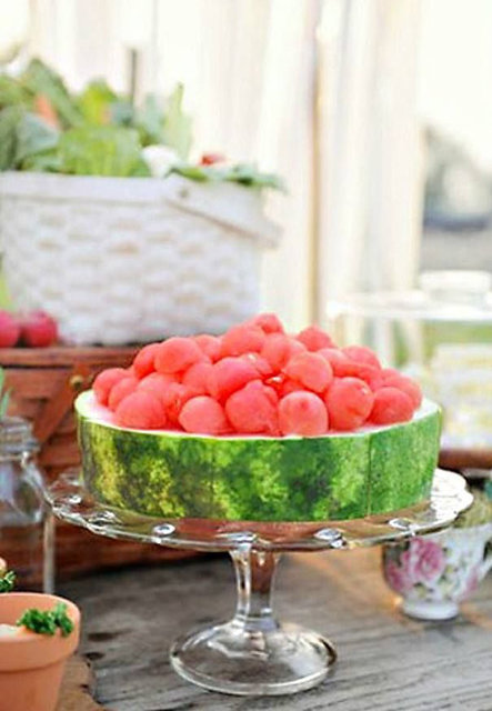 Karpuzunun üst ve alt kısmını kestikten sonra bir dondurma kaşığı yardımı ile içini yuvarlak yuvarlak ayırabilir ve masanızda içine buz küpleri koyarak servis edebilirsiniz.