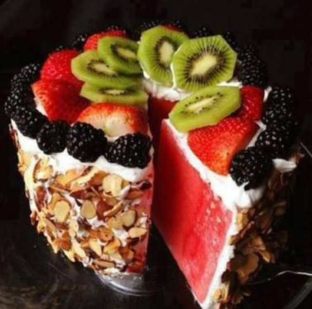 Ortaya çıkan karpuz içini pasta kreması ya da krem şanti ile kaplayın.
