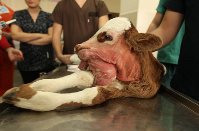 Yeni doğan buzağının üç çenesi ve üç dili olduğunu görünce büyük şaşkınlık yaşayan Sevinç, hayvanı Ondokuz Mayıs Üniversitesi (OMÜ) Veteriner Fakültesi Hayvan Hastanesine getirdi. Buzağıyı muayene eden Veteriner Fakültesi Cerrahi Anabilim Dalı Başkanı Prof. Dr. Ahmet Özak, AA muhabirine yaptığı açıklamada, bugüne kadar böyle bir olguya dünya literatüründe rastlanmadığını söyledi.