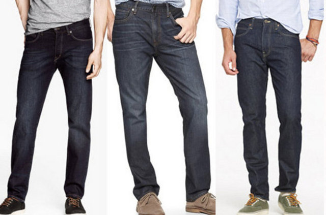 Koyu, düz paçalı ve taşlanmamış kot pantolon