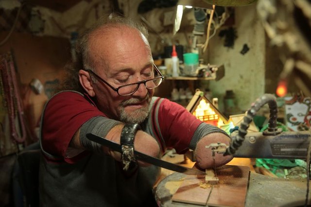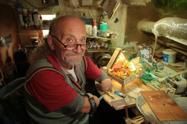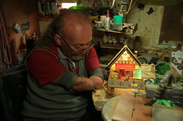 Çocukluğunda elektrik akımına kapılarak iki kolunu ve bir bacağını kaybeden Selahattin Genli, kollarının ucuna yaptırdığı özel aparatları kullanarak 5 metrekarelik atölyesinde 25 yılda 7 bin maket imal etti