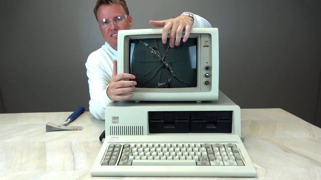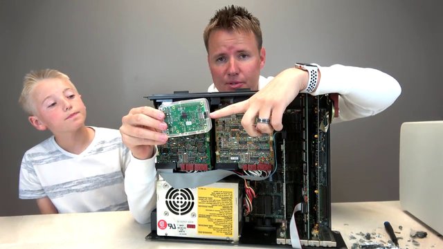 IBM tarafından 1981 yılında üretilen ilk kişisel bilgisayarı inceleyen baba oğul, içinde ne olduğunu merak edince, aleti paramparça ettiler.