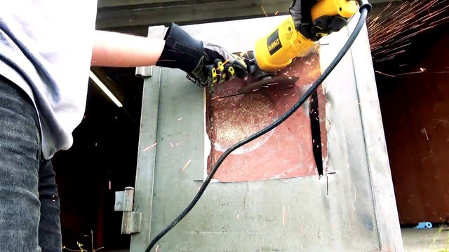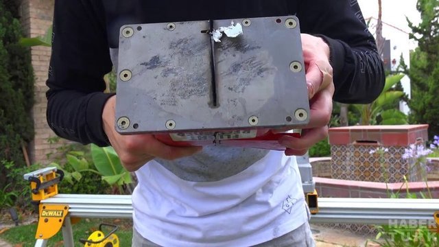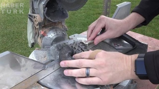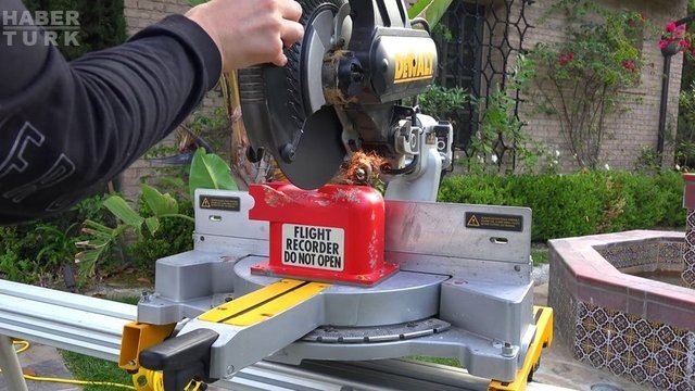 Fenomen baba oğul buldukları kara kutuyu elektrikli kesici ile kesmeye başlıyorlar.