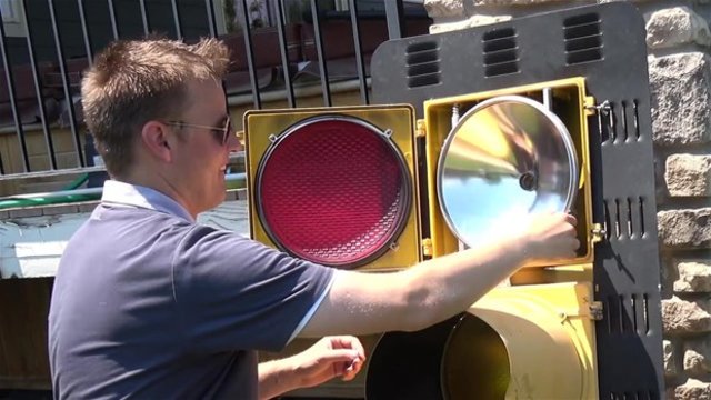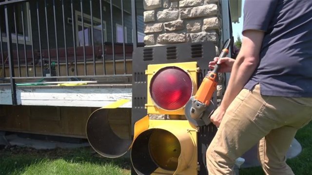 Bu defa bir trafik ışığını söküp içine baktılar.