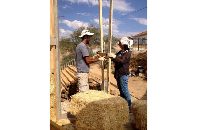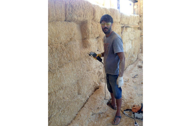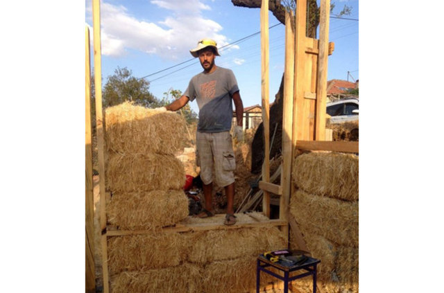 Birkaç bölüm hariç saman evin tamamını doğal şekilde yapmaya çalıştıklarını anlatan Ekinci, "Saman evimizi yapmaya başlarken alan eğimli olduğu için su basmanını betondan yaptık. Kirişleri ve taşıyıcı kolonlar tomruktan, duvarlarımızı samanla yaptık.
