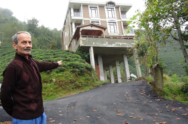 Geçen yıl bir yangın ihbarına gitmek için evin altından geçmek zorunda kalan itfaiye aracının geçişte zorlanması üzerine kolonların arasındaki toprak yol kazıldı, itfaiye araçları gibi yüksek araçların yoldan geçişi için de sorun kalmadı. Rize Belediyesi ekipleri de evin altından geçen mahalle yolunu önceki gün asfaltladı.