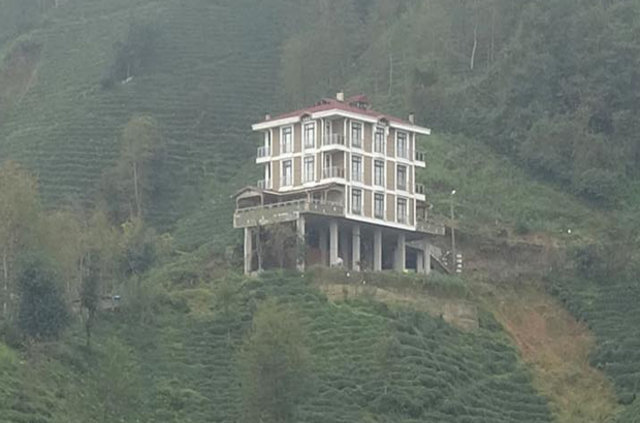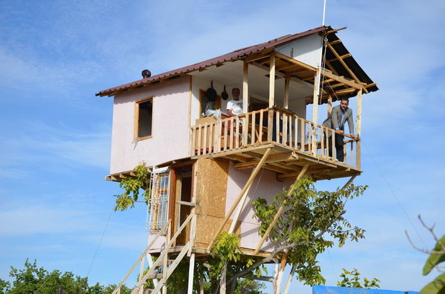 Rize'de eğimli arazi nedeniyle bazen yamaçlarda, bazen de ağaçların üzerinde inşa edilen ilginç yapılara bir yenisi daha eklendi.