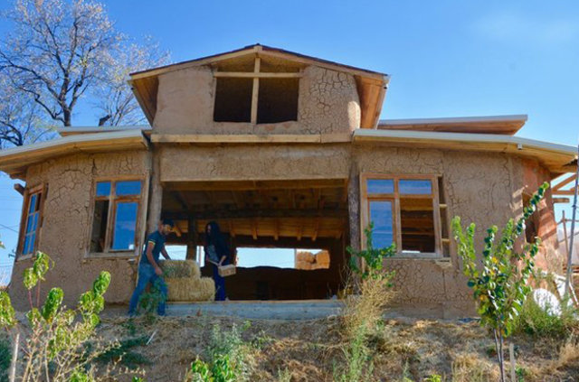 Kırşehir’de görsel sanatlar öğretmenliği yapan çift, saman balyaları ve çamurdan natürel ev yaptı.