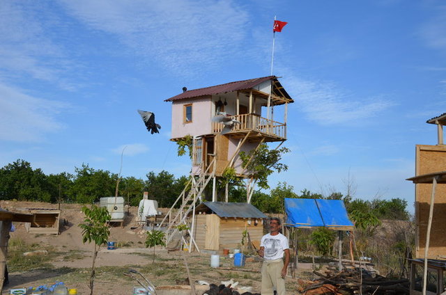 Kendi çapımda kendi imkanlarımla bölgemizde ilk defa 5,5 metre yüksekliğinde ceviz ağacının tepesine iki katlı ev yaptım. 2 yıldır da burada yaşıyorum. Akçadağ'a, Malatya'ya ben buraya Karadeniz'i taşıdım."