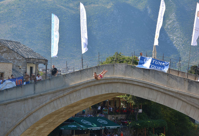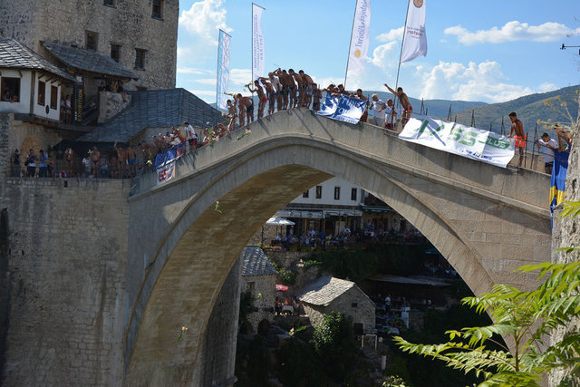 Mimar Hayrettin tarafından 1566'da inşa edilen tarihi Mostar Köprüsü'nde, yapıldığı yıldan itibaren aralıksız düzenlenen atlayışlara farklı ülkelerden her yıl onlarca sporcu katılıyor.
