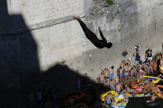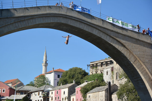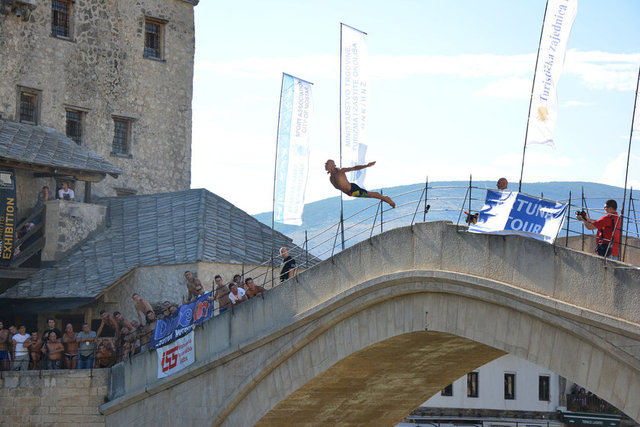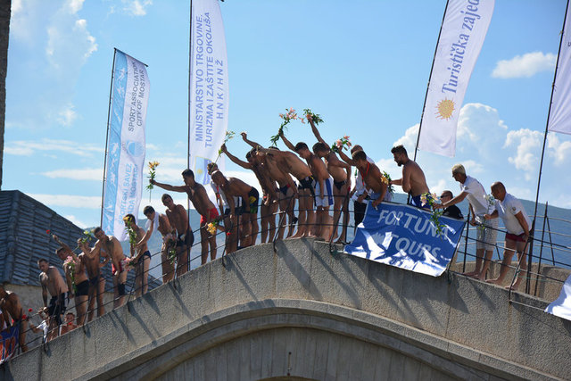 Mimar Sinan'ın talebesi Mimar Hayrettin tarafından 1566'da inşa edilen tarihi Mostar Köprüsü'nde düzenlenen atlama yarışlarına katılan 41 sporcu, 28 metre yükseklikten kendilerini zümrüt rengiyle bilinen Neretva Nehri'nin soğuk sularına bıraktı. Geleneksel atlayışların "baş üstü" kategorisinde Lorens Listo, 11'inci kez birinci oldu. Aynı kategoride Ivica Domanovic ikinciliği, Muhamed Mahnic ise üçüncülüğü elde etti.