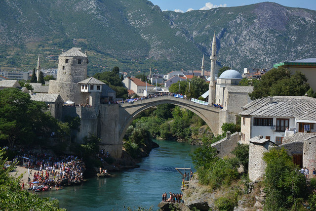 Mostar Köprüsü, Türkiye'nin girişimleriyle aslına uygun olarak 2004'te yeniden inşa edilmişti. Mostar Köprüsü'ndeki atlama yarışlarına Evliya Çelebi Seyahatnamesi'nde de yer veriyor.