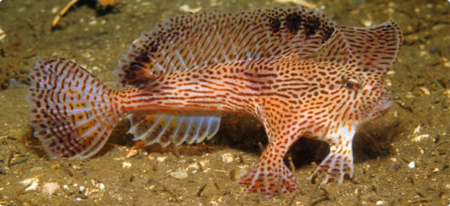 2 Psychedelic Frogfish: İlk kez 2009'da rastlanılan bu balık, normal yüzüşünün yanı sıra kanada benzeyen uzantılarıyla deniz tabanında kurbağa gibi zıplayarak da hareket edebiliyor. Boyları 15 santimetreyi bulan balıklar, derisindeki pembe - beyaz çizgilerle de tanınıyor.