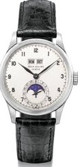 İlk sırada yine bir Patek Philippe var. 1948’de yapılmış bir Grand Complication. 18 ayar altın kasaya sahip perpetual takvimli, günü ve ayın durumunu gösteren, kronometreli deri kayışlı bu saat, 2010 yılında Christie’s’de düzenlenen bir müzayedede 5.7 milyon dolara yeni sahibini buldu.