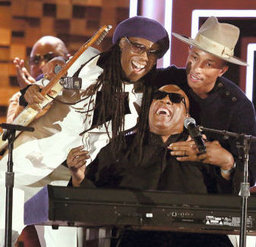 (Soldan) Nile Rodgers, Stevie Wonder ve Pharrell Williams, 56. Grammy Ödül Töreni’nde neşeli bir performans sergiledi. Gördüğünüz gibi erkekler dilediklerince eğlenmekte özgürler!