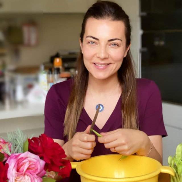 Eski Türkiye güzeli ve sunucu Defne Samyeli, karantina sürecinde helva yaptı.