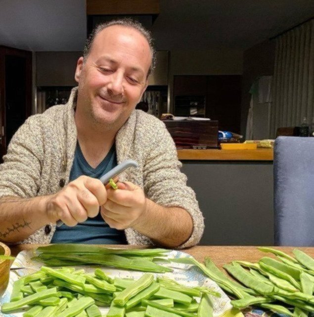 Pandemi sürecinde mutfağa giren komedyen Tolga Çevik, yemek yaptığı anları, "Fasulye ve sırık" notuyla paylaştı.