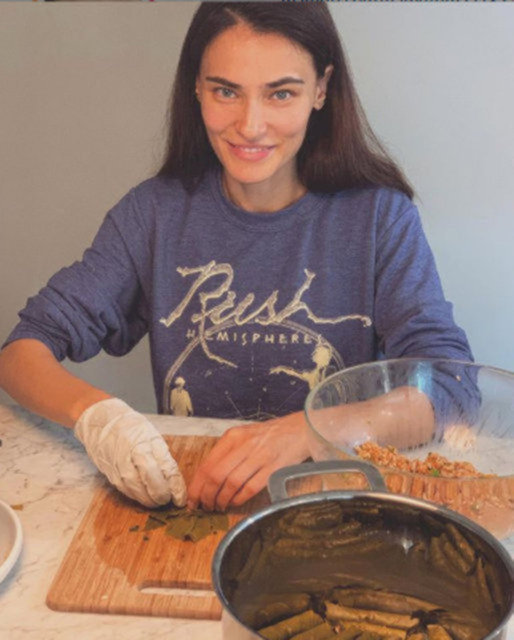 Oyuncu Saadet Işıl Aksoy, sarma sardığı anları sosyal medya hesabından yayınladı.