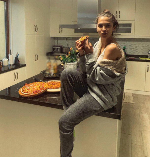 Oyuncu Biran Damla Yılmaz, pizza yediği anları, "Karantinada pizza! En sevdiğim... Şaka bir yana moral ve motivasyona çok iyi geliyor" notuyla sosyal medya hesabından yayınladı.