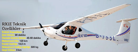 Elektrikli uçak konusunda en fazla Avrupalı Airbus’ın E-Fan, elektrikli uçak projesi biliniyordu. Airbus, 2 kişilik E-Fan 2.0 Aircraft adı verilen uçağın 2017’de, 4 kişilik E-Fan 4.0’ın da 2019’da seri üretime geçmesi hedefliyor. Ancak hedeflenen sürelerin ne derece yakalanacağı tartışmalı... Dolayısıyla elektrikli uçak konusunda yaşanan en güncel gelişme Çinli Liaoning Ruixiang General Aviation Co’nun geliştirdiği RX1E. Biri pilot olmak üzere iki koltuk kapasiteli olan uçak, karbon fiber kompozit malzemeden üretildi. Şarj edilebilir lityum piller ile çalışan RX1E, yaklaşık 2 dolarlık maliyet ile bir buçuk saat boyunca şarj edildikten sonra 45-60 dakika kadar havada kalabiliyor. Tek pervaneli elektrikli uçağın azamî sürati ise 120 km/saat. Test uçuşlarında çevreye hiçbir karbondioksit salımı da ölçülmeyen uçak bu anlamda tamamen çevreci. 2015’te Çin Sivil Havacılık İdaresi’nden “uçabilirlik” sertifikasını alan RX1E, geçtiğimiz günlerde başarıyla tamamlanan düşük sıcaklık testlerinin ardından, meraklı müşterilerden gelecek yeni siparişleri bekliyor. Şu ana kadar bu uçaktan dört tane üretildi. 28 tane de sipariş aldı. 2016 yılı içerisinde 20 adet uçağın daha üretilmesi planlanıyor. Nihai hedef ise yılda ortalama 100 adet üretim gerçekleştirebilmek. Son olarak Çin yapımı elektrikli uçağın fiyatının ise yaklaşık 170 bin dolar olduğunu söyleyelim. RX1E özellikle pilot eğitimi, hava fotoğrafçılığı ve turistik gezi için uygun görünüyor.