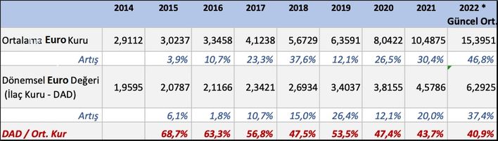 Ve 2022’deyiz. Eğer ilaç kuru mevcut mevzuata göre açıklanırsa 1 Euro 6.2925 TL olarak işlem görecek ve şu anki Euro değerinin sadece yüzde 41’i seviyesine karşılık gelecek.