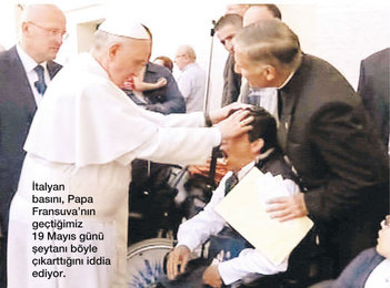 Karolik dünyası, günlerden buyana “Papa Fransuva’nın şeytan çıkartıp çıkartmadığını” tartışıyor... Tartışma, Papa’nın geçen 19 Mayıs günü Vatikan’da idare ettiği bir âyinden sonra Aziz Petrus Kilisesi’nin önündeki büyükmeydanda toplanan onbinlerce Katolik’i kutsadığı sırada tekerlekli sandalye ile getirilmiş bir gencin başının üzerine iki elini birden koyup kısa bir dua etmesi ile başladı.