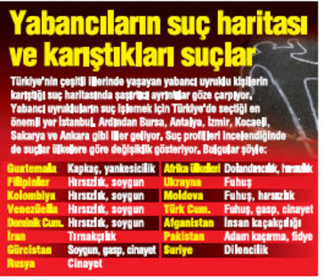 Küreselleşme, her alanı kapsayan bir kavram ki; Türkiye de kendi suçluları yetmezmiş gibi, ithal suçluların boy gösterdiği ülkeler arasında yer almaya başladı. Fuhuşla başlayan yabancı suç zinciri, hırsızlık, soygun, gasp ve cinayetlerle devam ediyor. Son yıllarda yaşanan hırsızlık ve soygun olaylarında ortaya çıkan yabancı suçlu profili, polisi bile şaşırtıyor.
