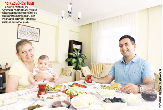 Avukat Emre Kaçar (31), Polonya’da ekonomi eğitimi alan aynı yaştaki Agnieszka ile sosyal paylaşım sitesi Facebook üzerinden tanıştı. Emre gün be gün ilerleyen arkadaşlıklarının ardından 7 kez Polonya’ya gitti. Agnieszka da 6 kez Türkiye’ye gelip, Emre’yi ziyaret etti. İkili her geliş gidişte birer hafta kaldılar. Birbirlerini seven Emre ve Agnieszka, 2.5 yılın sonunda evlilik kararı aldı. Şu an 3 yıldır evli olan Kaçan çiftinin 6 aylık Selin adında bir de kızları var.